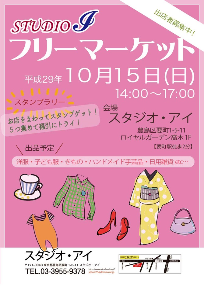 | 2017年10月16日(日曜日) 第6回スタジオ・アイ フリーマーケットを開催致します。 |