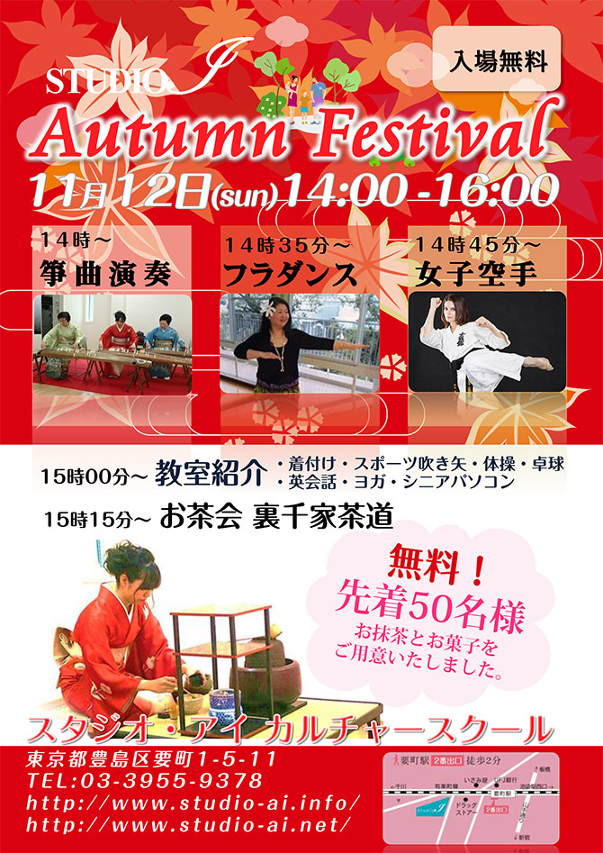 | 2017年11月12日(日曜日) スタジオ・アイ オータムフェスタを開催致します。 |