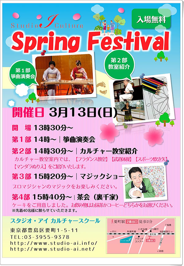 | 2016年3月13日(日) 第1回スタジオ・アイ Spring Festivalを開催致します。 |