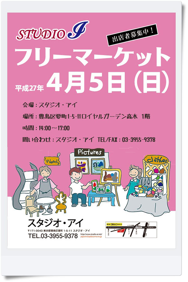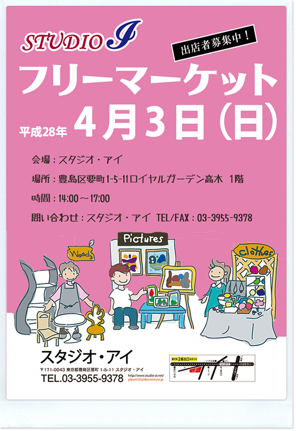2016年4月3日(日曜日)、第5回スタジオ・アイ フリーマーケットを開催致します。 会場:スタジオ・アイ