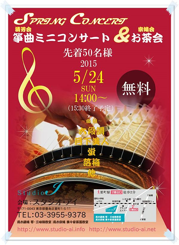 | 2015年5月24日 清芳会 箏曲ミニコンサート&宗靖会 お茶会 |