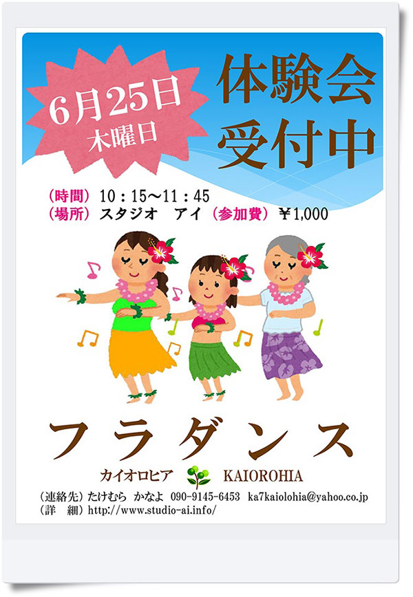 | 2015年6月25日 (木曜日)フラダンス体験会! |
