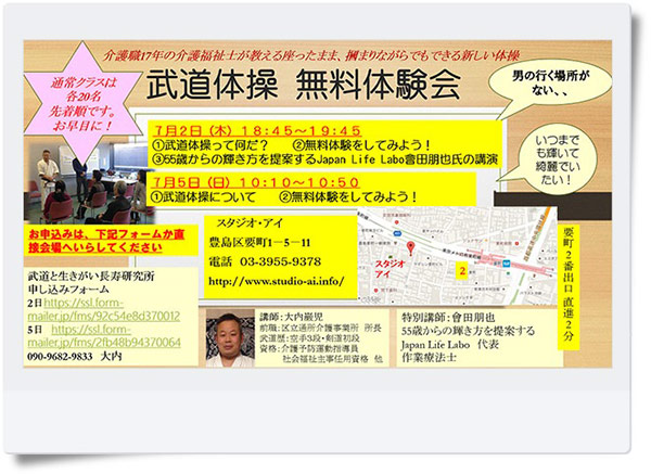 | 2015年7月2日 (木曜日) 7月5日 (日曜日)「武道体操」無料体験会!! |