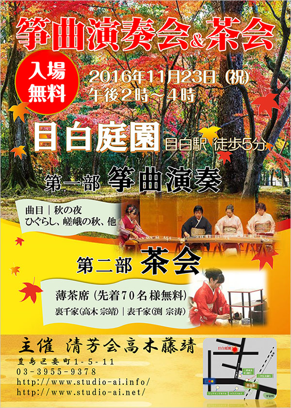 | 2016年11月23日(祝) 目白庭園 筝曲演奏会&茶会 |